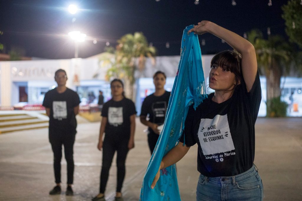 Este espectáculo es multidisciplinario ya que estará conformado por 4 monólogos a cargo de la actriz María Fernanda Bolívar; un poema titulado “Las esquinas de Mérida”, un breve fragmento de uno de los cuentos de Sergio Salazar Vadillo por Yobaín Vázquez. Este recorrido está cargado de historia que ha sido recolectada por esta agrupación a lo largo de su trayecto. Podrán escuchar las historias de viva voz desde los personajes de la Tucha, el Monifato, un inmigrante japonés y un loro querido por su comunidad; además de fotografías que nos mostrarán el cambio y la cultura de la que está cargada el barrio de Santiago.