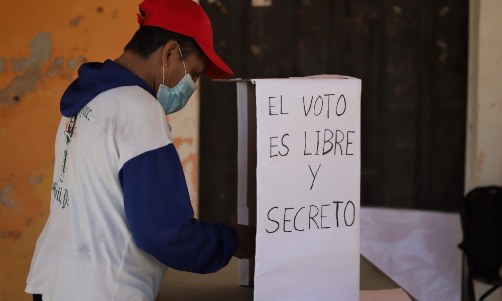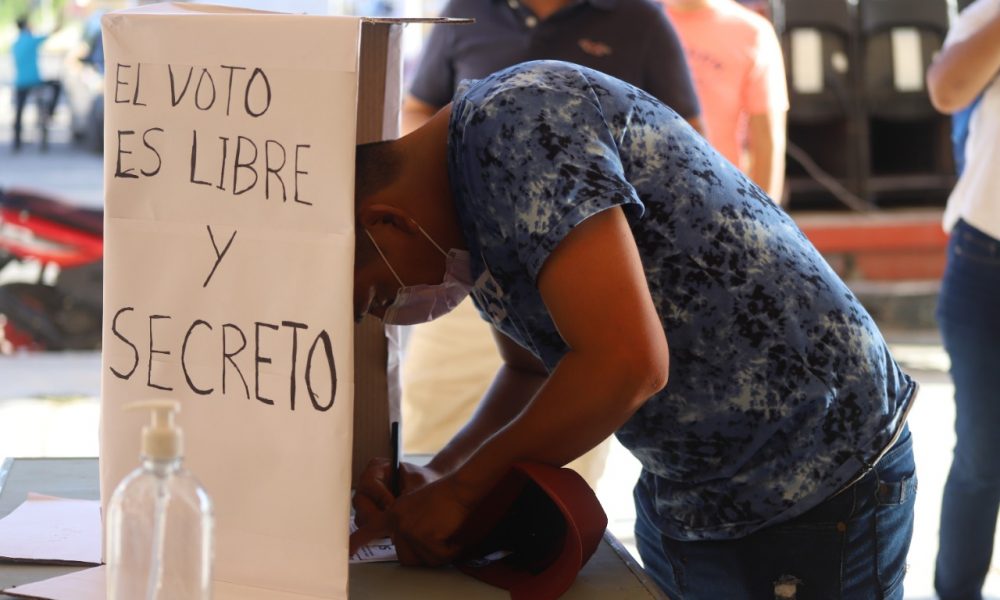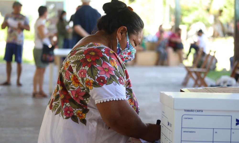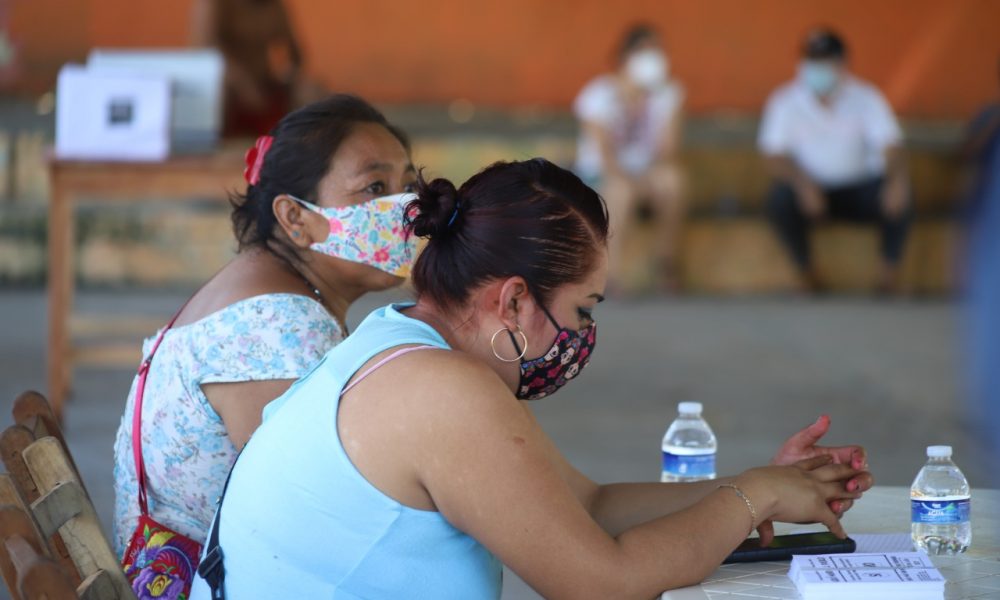 En el sitio, integrantes del Consejo Maya del Poniente Chik’in Ja’ y del Equipo Indignación, vigilaban que las y los asistentes cumplieran con las medidas de higiene, como el distanciamiento social, y les explicaban la dinámica de la votación.