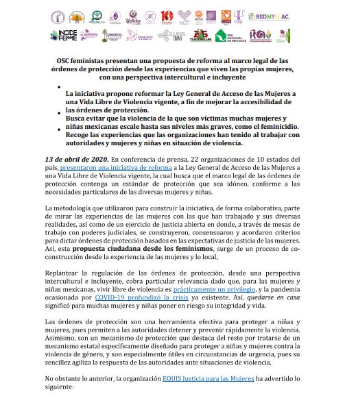 OSC feministas presentan una propuesta de reforma al marco legal de las órdenes de protección desde las experiencias que viven las propias mujeres, con una perspectiva intercultural e incluyente