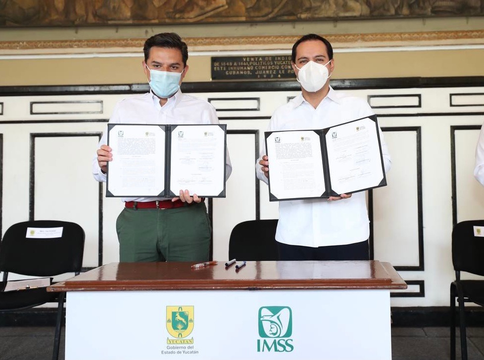 En el Salón de la Historia de Palacio de Gobierno, el gobernador Mauricio Vila Dosal y el director del IMSS, Zoé Robledo Aburto, signaron un acuerdo mediante el cual el Gobierno del Estado cederá a la dependencia el predio del Hospital para el establecimiento de un nuevo nosocomio.