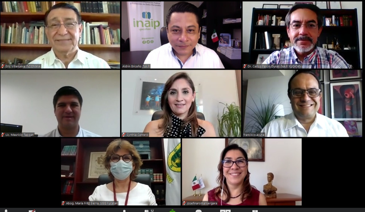 En la ceremonia, realizada vía remota, participaron con invitados de honor, Carlos Fernando Pavón Durán, Comisionado del Inaip Yucatán; Cynthia Patricia Cantero Pacheco, Coordinadora de los Organismos Garantes Locales del SNT; Mauricio Tappan Silveira, Consejero Jurídico del Estado y Eric Villanueva Mukul, Director general del INDEMAYA.