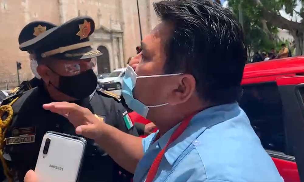Por los momentos de tensión que protagonizaron Nieves Cervantes y los medios de comunicación, los custodios del acceso al Palacio de Gobierno escoltaron a María y a su hijo mayor Irving Covián Ravelo a su automóvil.