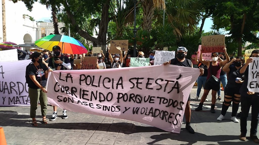 “En Yucatán se destina mucho dinero de nuestros impuestos, de nuestro trabajo, para la seguridad. Cámaras en toda la ciudad para vigilarnos, drones, armas para reprimirnos, no para reprimir a los verdaderos asesinos. ¿Quién te vigila, Mauricio Vila? ¿Y a Renán Barrera, a [Luis Felipe] Saidén, a la policía?”, expresaron.
