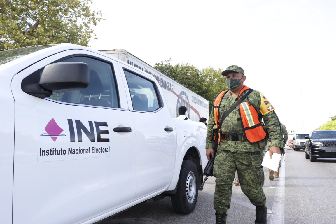 Tenemos la seguridad de que cada camión que recibimos en la caseta fitosanitaria de Halachó, llegará bien a su destino en las sedes de cada uno de los consejos distritales de esta entidad, gracias a la colaboración de la Secretaría de la Marina Armada de México y la Secretaría de Seguridad Pública estatal, tanto en el traslado como durante la descarga del material electoral, así como a la Secretaría de la Defensa Nacional por el resguardo de las sedes distritales