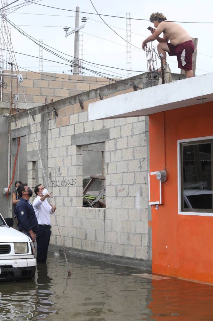 De acuerdo con el Gobierno del Estado, la precipitación de ayer en el puerto correspondió al 30% de la que recibe anualmente ese municipio. El fraccionamiento “Ciénaga 2000” fue el más dañado de la zona, pues el nivel del agua rebasó el metro de altura.
