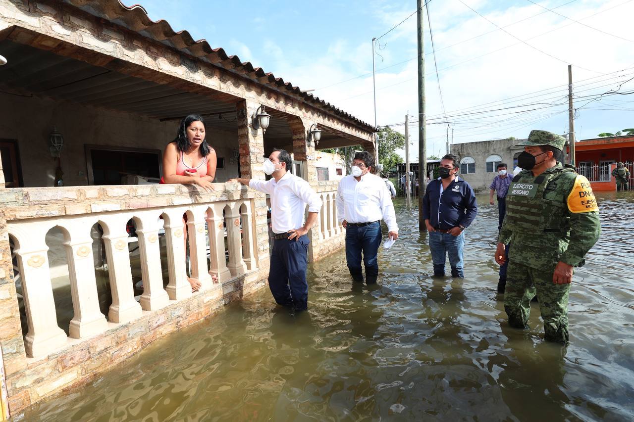 Ante la situación, autoridades estatales recorrieron la zona afectada para ofrecer ayuda a las familias que resultaron damnificadas. El Gobierno local anunció que apoyará con cinco pipas extractoras de agua y una perforadora de pozos de la Secretaría de Desarrollo Rural (Seder) para disminuir el nivel del agua, así como con 500 paquetes alimentarios para las familias de la zona de la ciénaga.