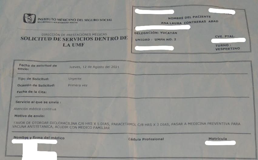 Actualmente Ana está en recuperación y está evaluando la posibilidad de presentar una queja contra la UMF de Progreso por la mala atención y el desabasto de la vacuna, pues también supo que otros y otras derechohabientes han tenido problemas en ese recinto.