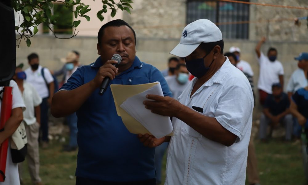 Cabe mencionar que el comisario ejidal, Santos Teobaldo Pat May, intentó impedir que May May hablara en la asamblea, argumentando que no es ejidatario. Pero el académico presentó una carta poder de su abuelo, miembro del ejido, y finalmente los presentes insistieron en que tomara la palabra.