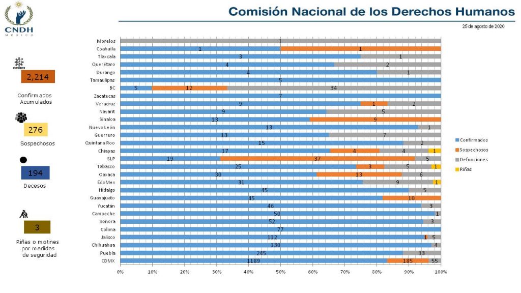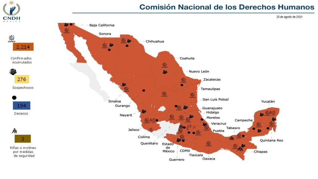 Por otro lado, la CNDH solicitó desde hace dos semanas al Consejo de Salubridad General y a la Secretaría de Salud Federal, garantizar que cuando se cuente con una vacuna se distribuya en dosis suficientes a los centros penitenciarios federales, estatales y municipales.