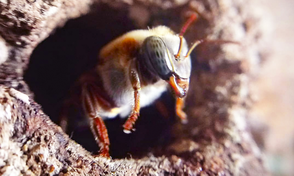 La abeja guardiana anda protegiendo a la Xunáan kaab (abeja reina) quien es la encargada de orientar el trabajo y guiar el trabajo de su colonia. Los bojon che´ (árbol hueco) son sus lugares predilectos para incubar y desarrollarse, el néctar de su intenso trabajo organizado permite la vida de cientos de apicultores quienes, desde tiempos remotos han practicado la apicultura. El kab náal (apicultor) utiliza esta miel para endulzar el saka’ o el báalche’ que emplea en sus ceremonias y primicias de agradecimiento a los cuidadores del monte.
