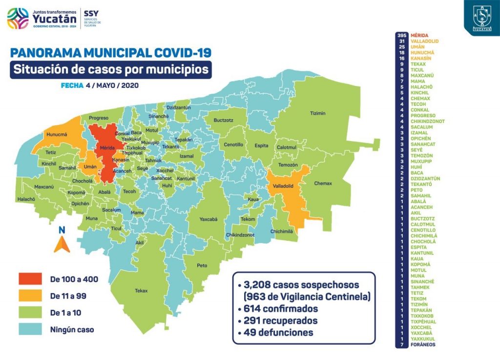 A casi dos meses de que se detectara el primer caso de COVID-19 (coronavirus), en la entidad, el virus ha llegado a 54 municipios yucatecos, ha enfermado a 614 personas y ocasionado la muerte de 49, de acuerdo con informes de la Secretaría de Salud local (SSY).